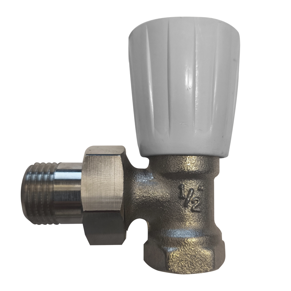 Kézi működtetésű, kettős beállítású radiátorszelep (sarok)
