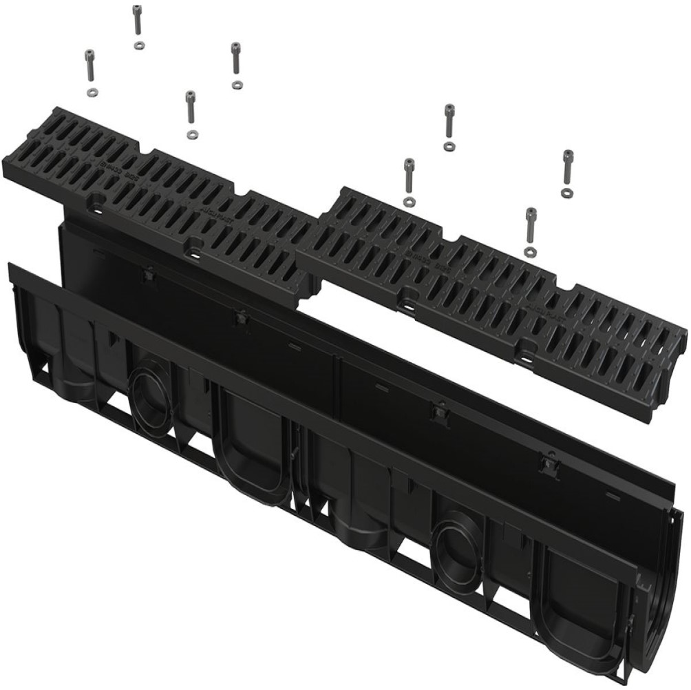 Kompozit rács a folyókában: 8 db rozsdamentes acél csavarral rögzítve, beömlőrés szélessége 14 mm