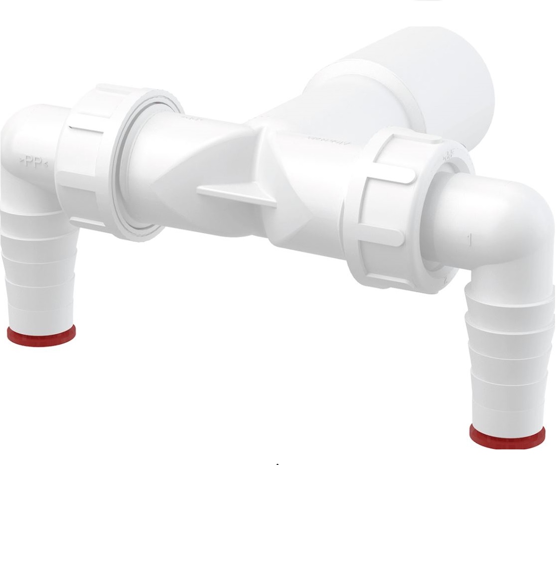 A termék két egyedi csonkkal rendelkezik, így két különálló készülék szennyvízének elvezetése oldható meg egyetlen csatlakozóhelyről.