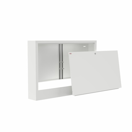 A m-tech falon kívüli osztódoboz ideális megoldás központi fűtéshez és padlófűtési rendszerekhez. A szekrény kifejezetten az osztó-gyűjtők falon kívüli telepítésére lett tervezve, erős acéllemez szerkezete tartósságot és stabilitást biztosít. A gondosan kialakított, porszórt fehér felület modern megjelenést és magas fokú korrózióvédelmet nyújt.