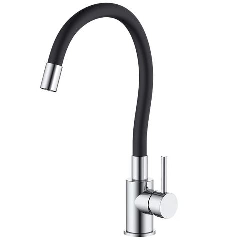 Ez a csaptelep egy egykaros, álló kialakítású konyhai mosogató csaptelep, amelyet a rugalmas, flexibilis kifolyócső tesz különösen praktikus használatúvá. A fekete színű kivitel modern, letisztult megjelenést ad a konyhának.