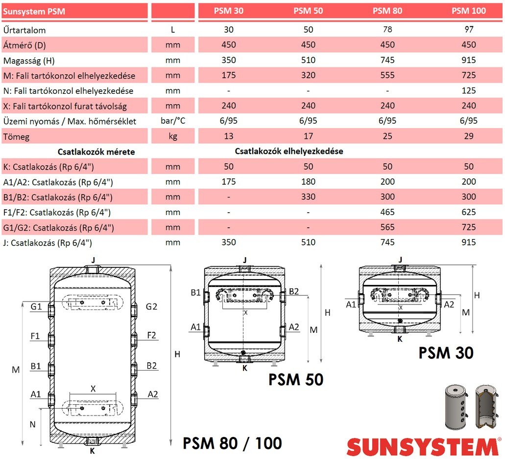 Hajdu PT HC 80 F fali puffertároló hőszivattyús rendszerekhez, hőcserélő nélkül