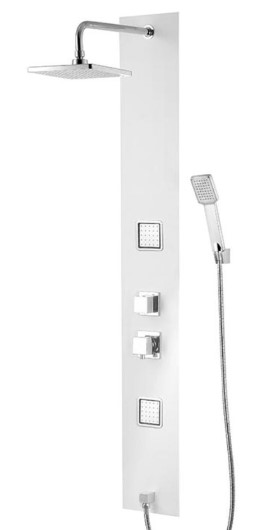 Paloma sarok zuhanypanelünk praktikussága mellett nagyon jól mutat bármely fürdőszobában. A fehér színű, alumínium paneltesten trópusi esőztetőt, 2 darab tűfúvókás hátmasszázst, csaptelepet és alulról csatlakoztatott kézitust helyeztünk el a maximális kényelem érdekében.
